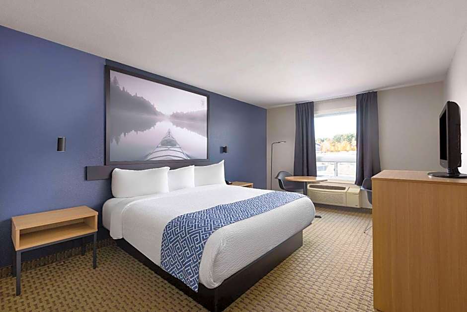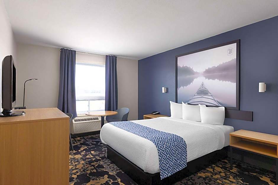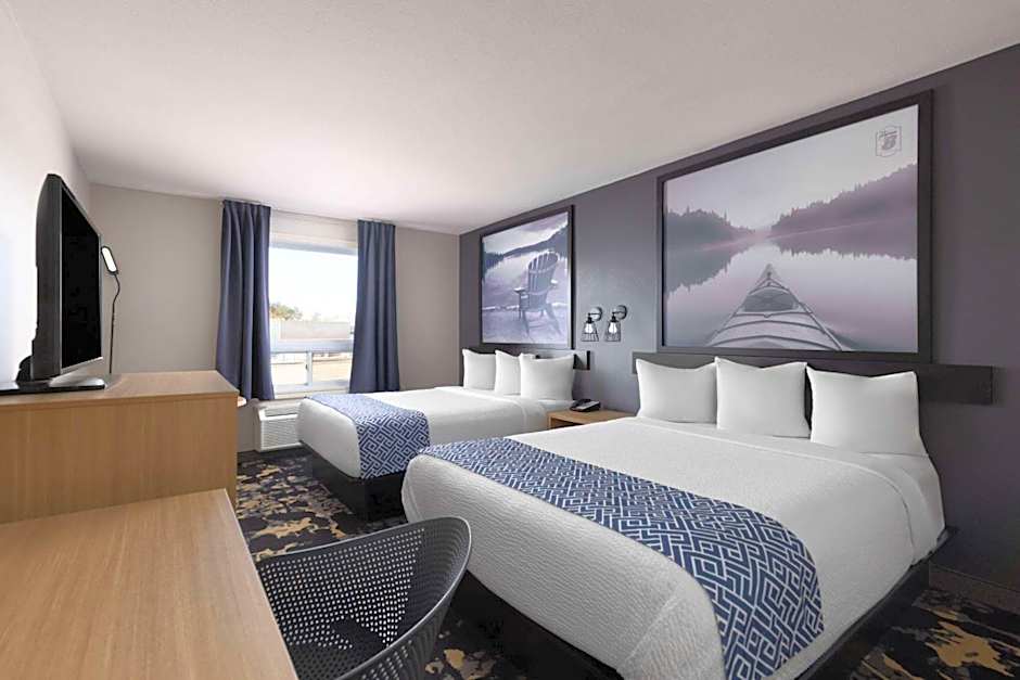 This room has air conditioning, a microwave, refrigerator and hair dryer.